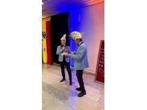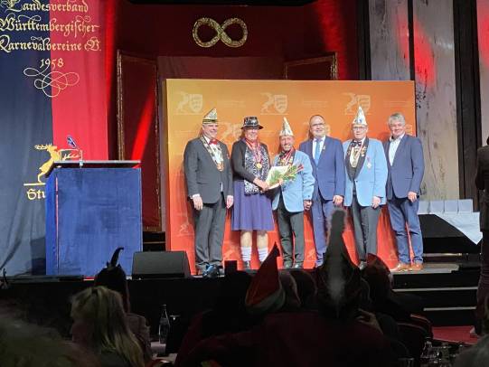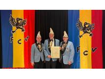 Mit großer Gespanntheit ging es nun zum Tagesordnungspunkt Wahlen. Vizepräsident Michael Knobloch ergriff das Wort und teilte mit, dass er aus mehreren Gründen nach neun Jahren nicht mehr als Kandidat zur Verfügung stehe. Die Vereinsführung bedankte sich mit der Figur eines Elferrats aus Ton beim scheidenden „Vize“. Der Präsident Jürgen Fünfgelder verlieh ihm im Namen des Gesamtvereins die goldene Ehrennadel, die höchste Auszeichnung des FCV, für seine treuen Dienste. Die Übergabe erfolgte unter stehenden Ovationen aller Anwesenden.